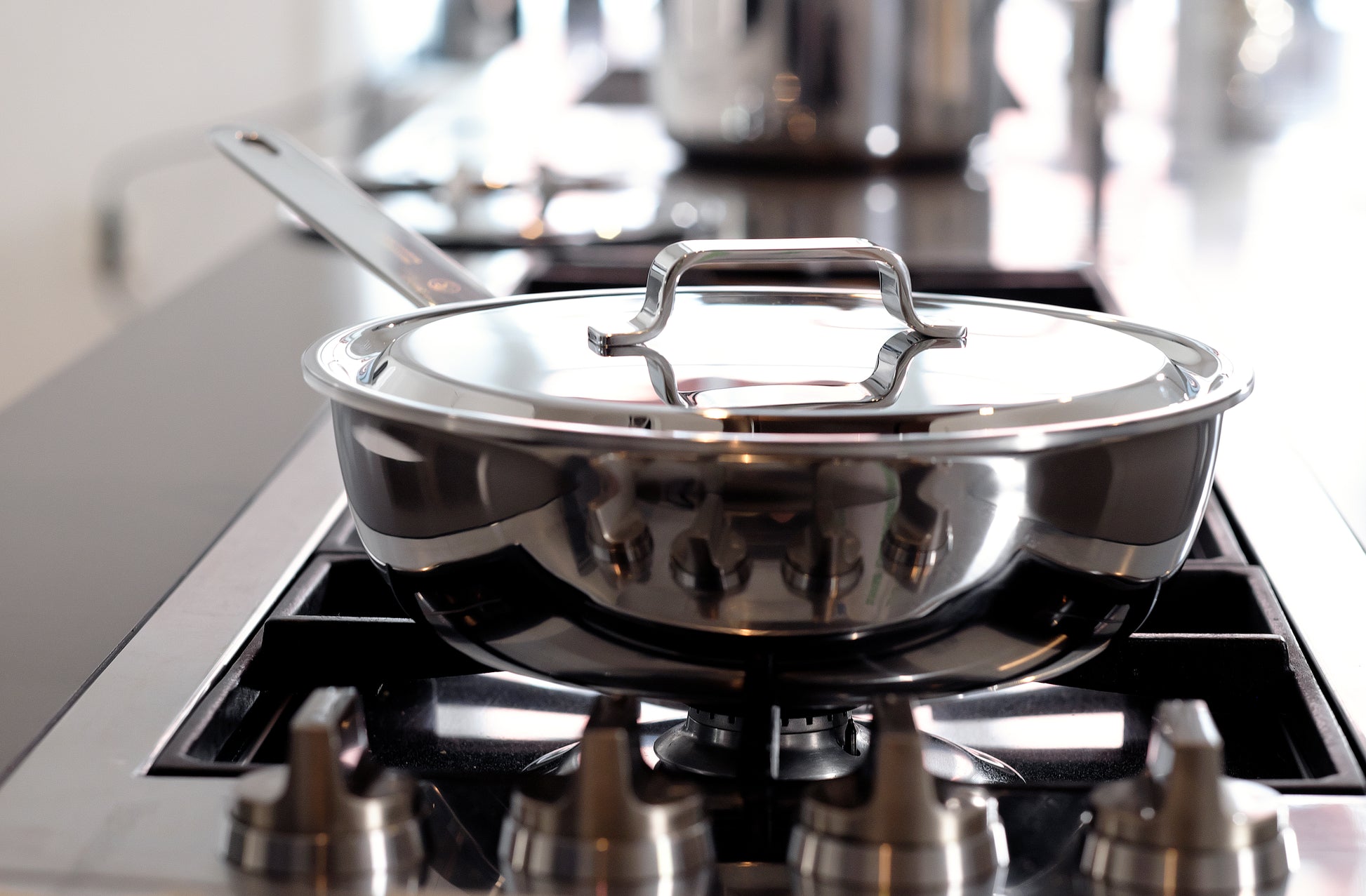 Heat resistant stainless steel is easy to clean between quick jobs on the stove