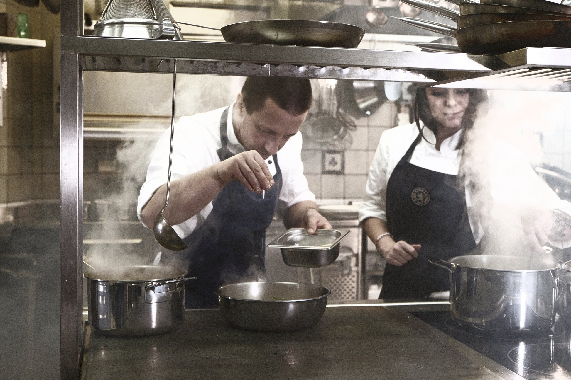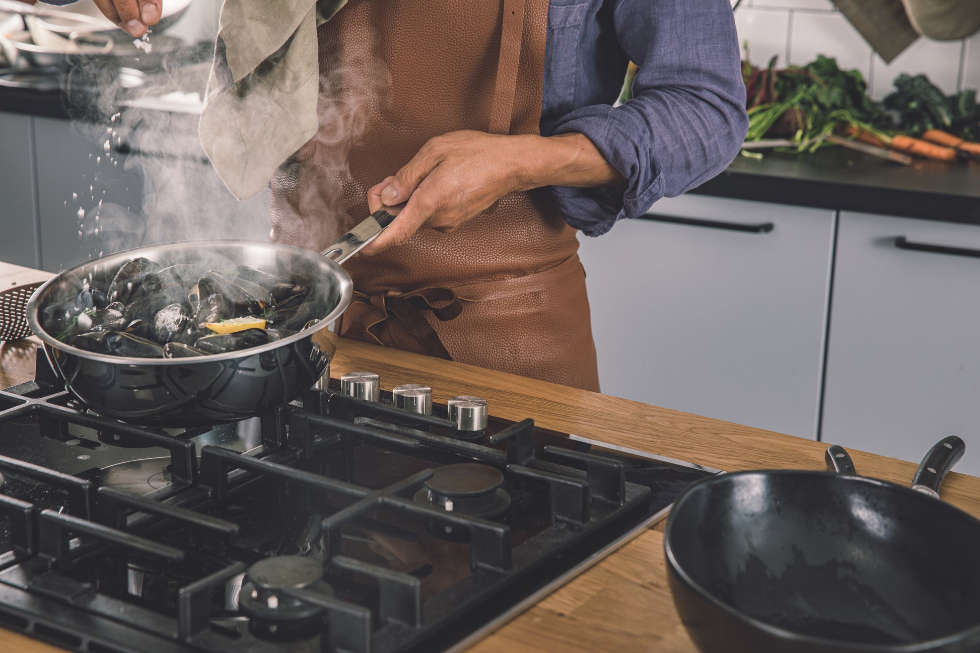 The sauteuse is indispensable in the professional kitchen. This deep frying pan – quite similar to the Asian wok – is for making food jump around – “sauter” in French – as it is rapidly cooked.
