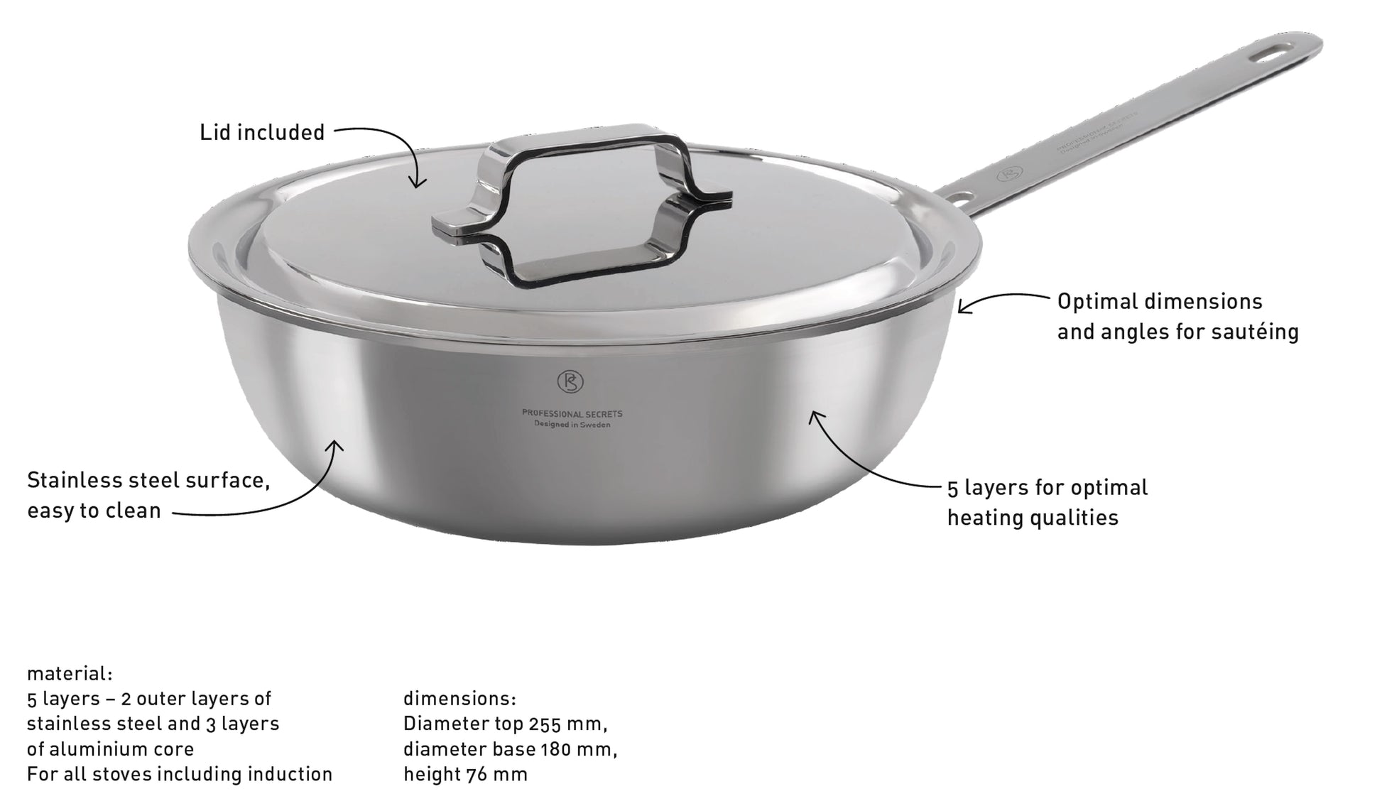 Your sauteuse from Professional Secrets comes with a lid, making it perfect also for braising on the stove or in the oven.