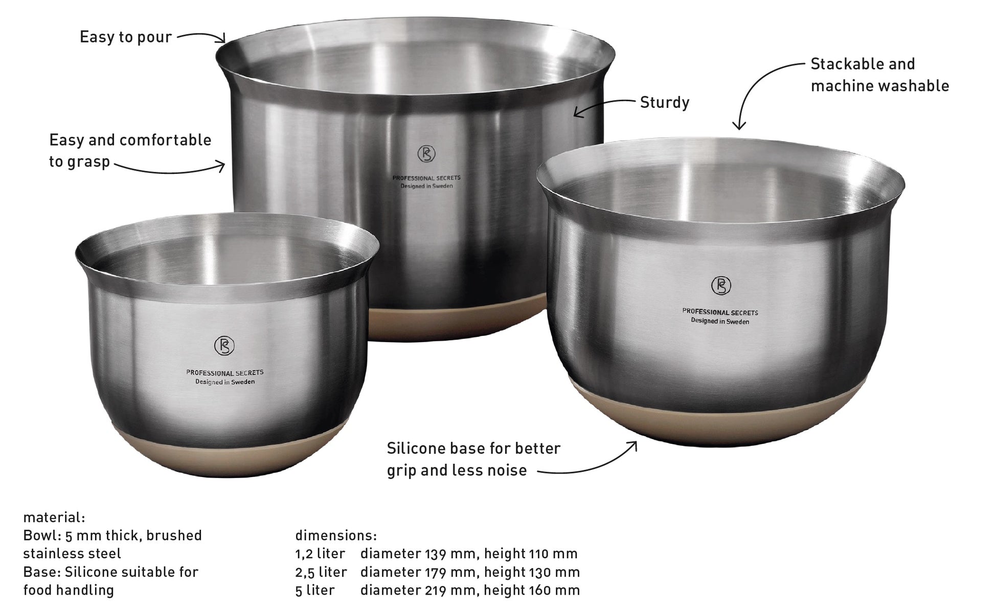 Mixing bowls are used for a multitude of tasks when preparing food. This kitchen tool seldom gets any attention – but professional cooks use it daily and it must meet many requirements.